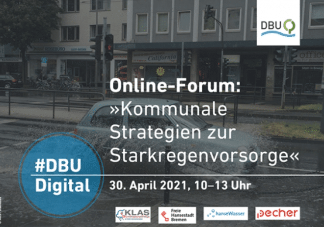 Im Rahmen der DBU-Abschlussveranstaltung zum Projekt KLAS werden erfolgreiche Beispiele für die Erfüllung der kommunalen Gemeinschaftsaufgabe Starkregenvorsorge aufgezeigt. Initialgeber ist die Freie Hansestadt Bremen, die mit den Projektpartnern in dem Projekt KLAS – KLimaAnpassungsStrategie Extreme Regenereignisse – auf mehr als acht Jahre Erfahrung in der kommunalen Starkregenvorsorge zurückblicken kann und eine integrierte Starkregenvorsorgestrategie im Planungs- und Verwaltungshandeln implementiert hat.